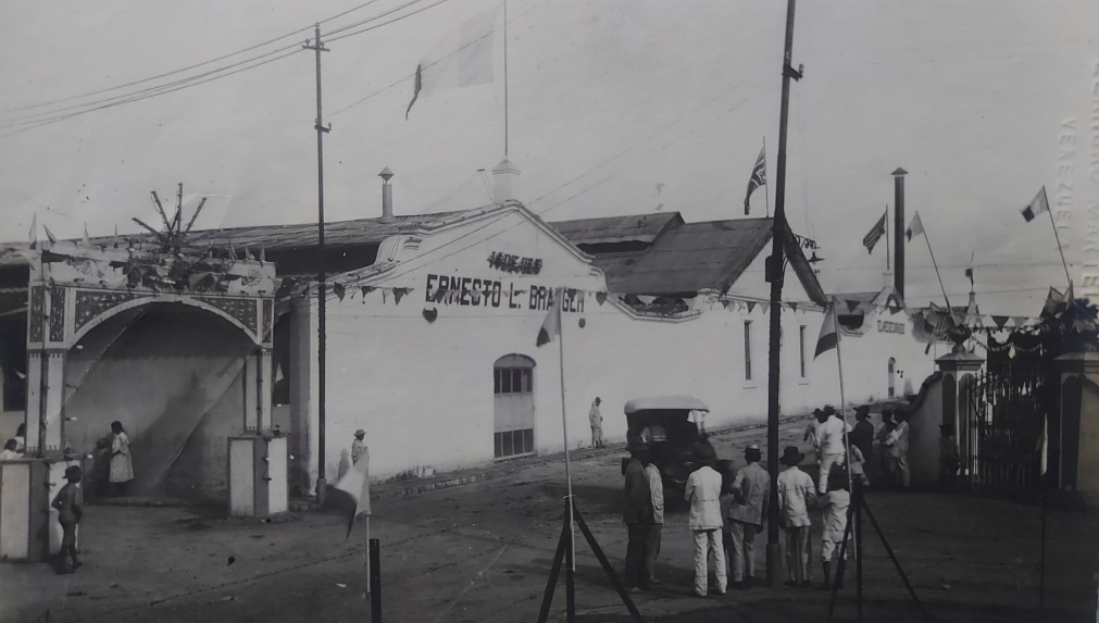 “En el 8° Aniversario de la instalación de Telares Carabobo, el personal de estos, impulsado por un vivo sentimiento de justica y gratitud, presenta muy respetuosamente este sencillo recuerdo, en ofrenda de su cordial y perenne agradecimiento al Señor Don, Ernesto L, Branger, por la generosa cuanto humanitaria conducta que observó comprobándolo eficazmente en los angustiosos días de la terrible epidemia. Valencia 8 de diciembre de 1918″.