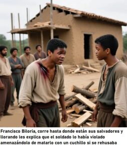 El jovenci­to agravi­a­do, lla­ma­do Fran­cis­co Bilo­ria, corre has­ta donde están sus sal­vadores y llo­ran­do les expli­ca que el sol­da­do lo había vio­la­do ame­nazán­do­lo de matar­lo con un cuchil­lo si se rehus­a­ba. El pobre chico casi no podía  cam­i­nar por el daño que le había cau­sa­do en sus partes ínti­mas el depravado.
