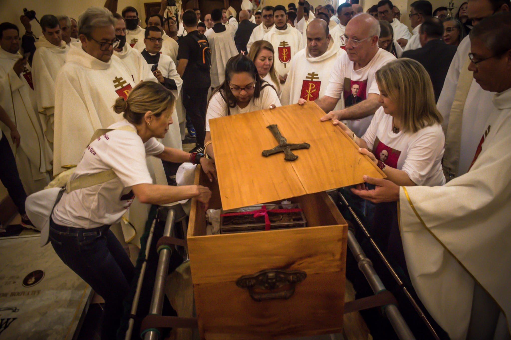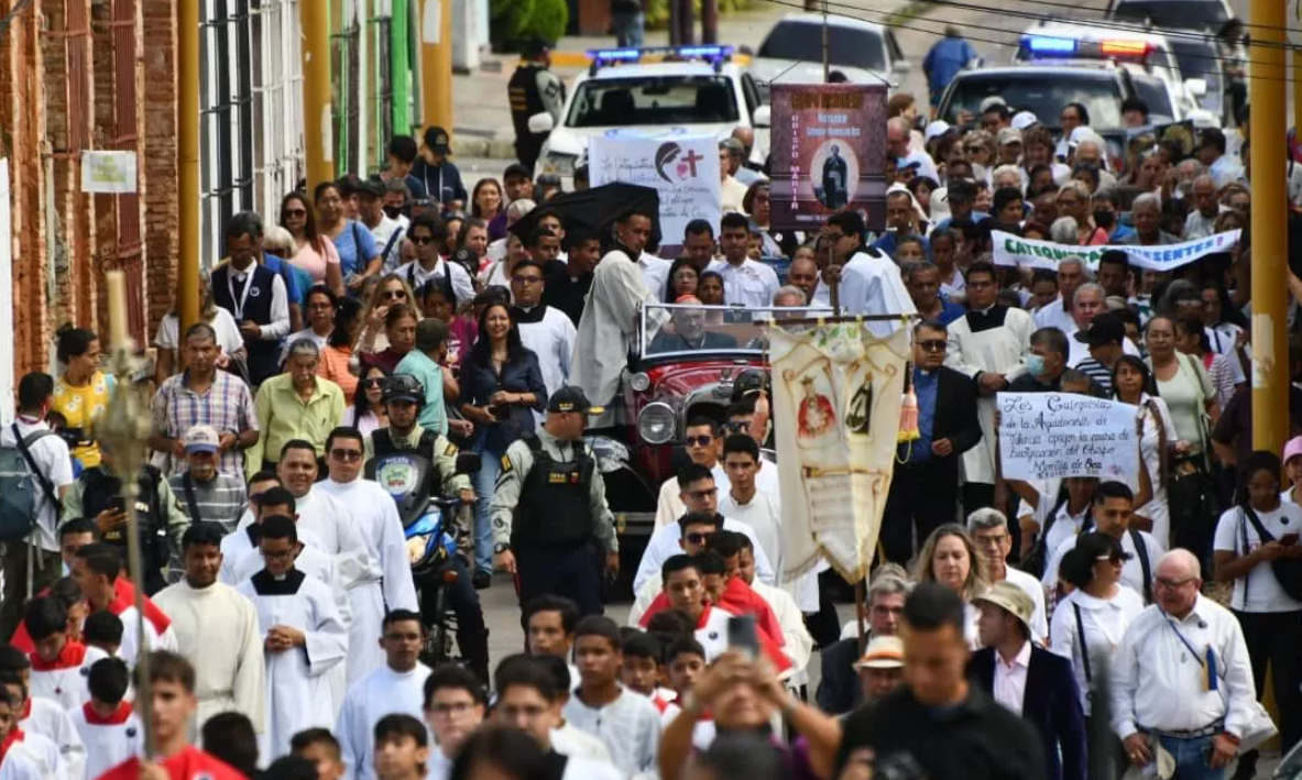 En medio de cantos litúrgicos, el osario de madera fue subido a un automóvil de época de color rojo, especialmente acondicionado para la ocasión. La procesión fue presidida por el cardenal Baltazar Enrique Porras Cardozo, arzobispo de Caracas y presidente de la Comisión Histórica del proceso de canonización del Siervo de Dios Montes de Oca, quien estuvo acompañado de monseñor Diego Padrón, arzobispo Emérito de Cumaná.