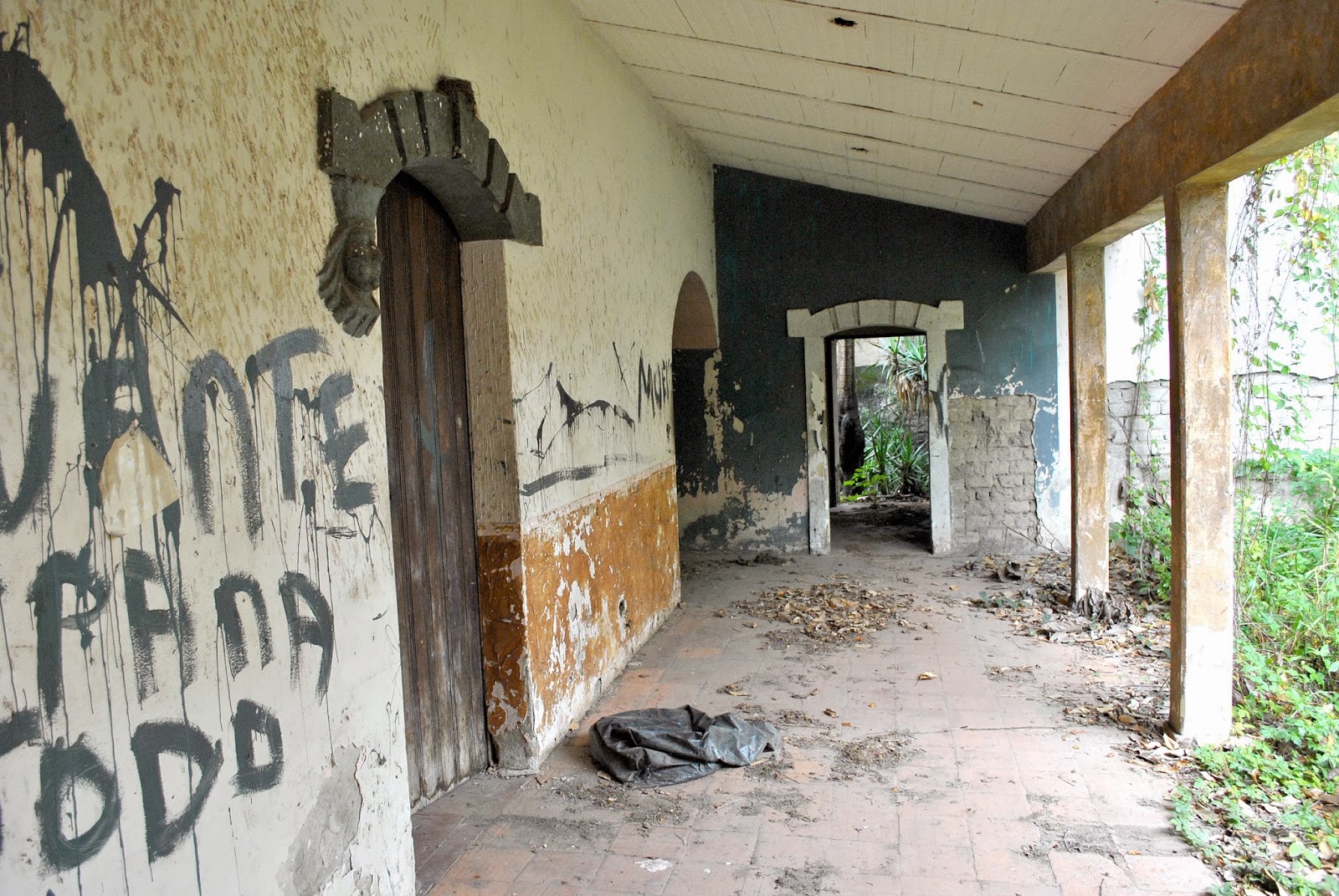 Las paredes de adobe comienzan a erosionarse por el abandono, cayéndose los frisos. El piso sepultado entre la tierra y el olvido. El techo de madera invadido de termitas se desploma sin aviso. Las puertas de madera se resisten a envejecer. El gran tejado oculto entre la enredaderas, se niega a ceder pese a su desplome. Las piezas sanitarias fueron hurtadas, así como todo rastro de iluminación. La ruina presente en cada rincón de la histórica casona quiere perpetrarse.