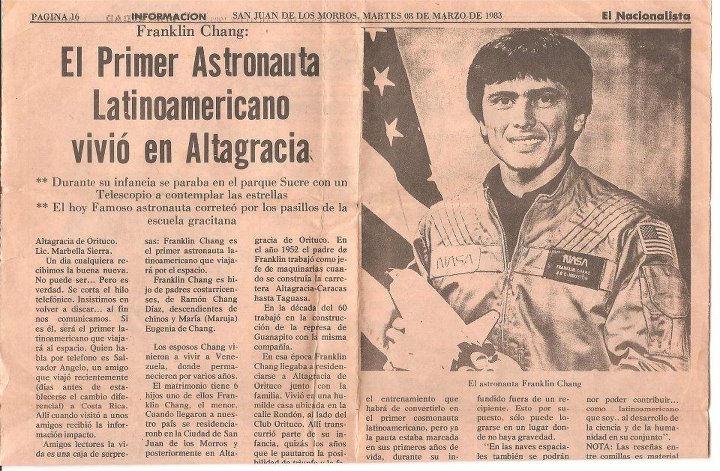 Franklin Ramón Chang Díaz vino al mundo en San José de Costa Rica, un 5 de abril de 1950. Apenas comenzaba a balbucear las primeras palabras cuando sus padres emprendieron rumbo a Venezuela, seducidos por aquel país que, en los años dorados del petróleo, se anunciaba como la tierra donde los sueños se volvían posibles: “el sueño venezolano”.