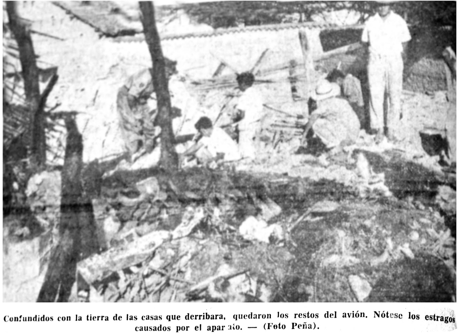 Pre­cisa­mente en la vivien­da de Georgina de Rodríguez, y donde cayó un amasi­jo de hier­ros retor­ci­dos, a un lado de las ame­tral­lado­ras, se encon­tró el cadáver muti­la­do del infor­tu­na­do pilo­to. Allí, un voraz incen­dio con­sum­ió parte del inte­ri­or de la casa.