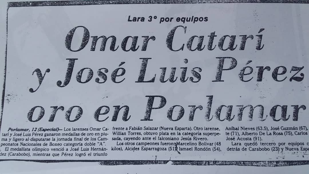 Con gra­cia evo­ca los Jue­gos “Batal­la de Carabobo” trasmi­ti­dos por la tele­vi­so­ra Venevisión; pelea difun­di­da en la pan­talla con­tra el rep­re­sen­tante de Argenti­na en peso Wél­ter junior; donde es vis­to por unos veci­nos que sor­pre­si­va­mente le avisan a su madre quién jocosa­mente man­i­festó: “ese nació para andar dan­do golpes”. Cat­e­goría donde logro su victoria.