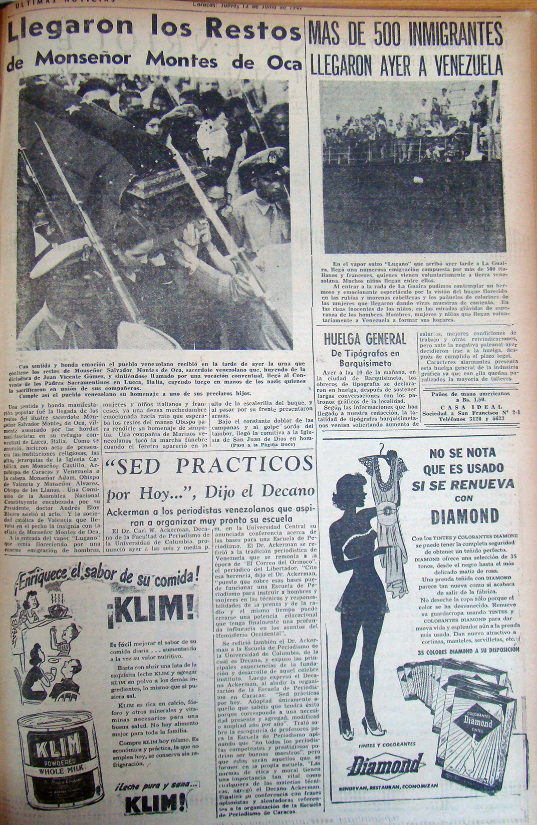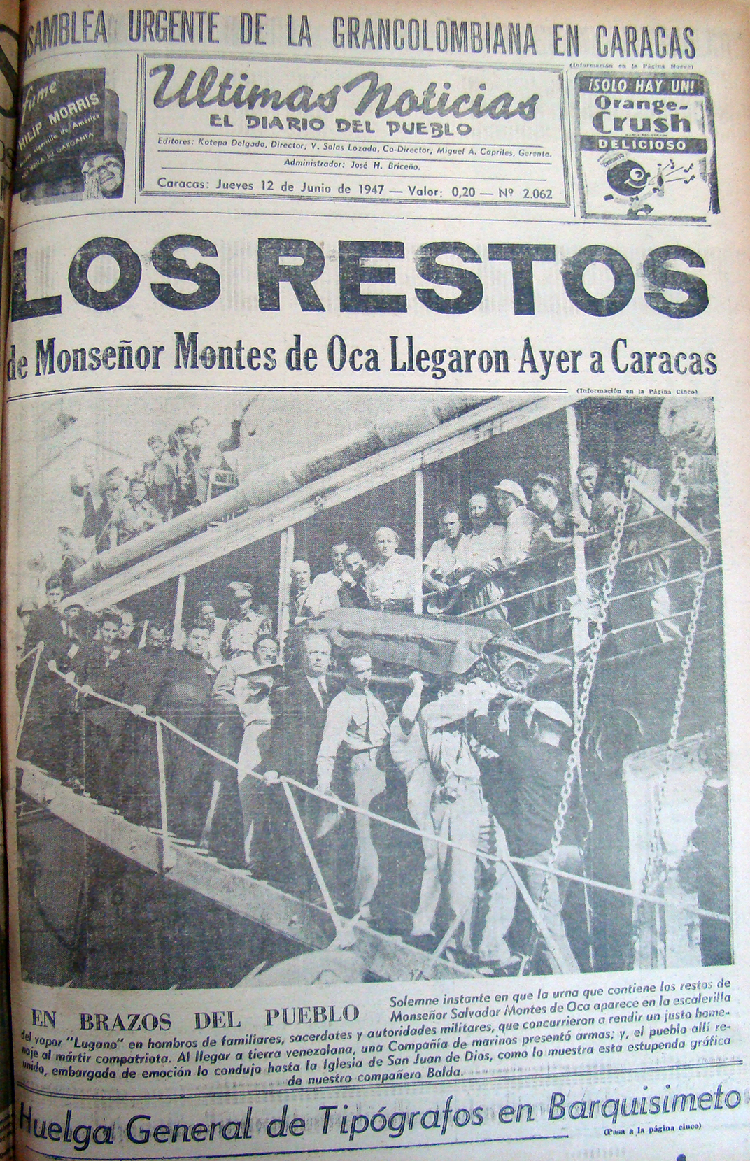 Eran testigos del arribo de los restos mortales del obispo larense, entre ellos aguardaba impaciente y apesadumbrado el Dr. Juan Carmona, propietario y director del Diario EL IMPULSO de Barquisimeto, que había estudiado y crecido en Carora junto al obispo Montes de Oca y con quien jamás perdió contacto, al contrario, con el transcurrir del tiempo, esta amistad se consolidó.