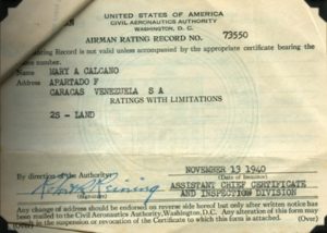 Como anécdota relata Mary Calcaño que durante el curso no era la velocidad lo que le impactaba, porque los carros iban a cien millas por hora y ellos en el avión iban a sesenta, por lo que los carros les pasaban. En su primer solo se sintió “como abandonada” por la ausencia del instructor, y al momento de aterrizar, un camión incursionó en la pista, teniendo que subir de nuevo, con susto, más por el temor a que la regañasen que por miedo a matarse.