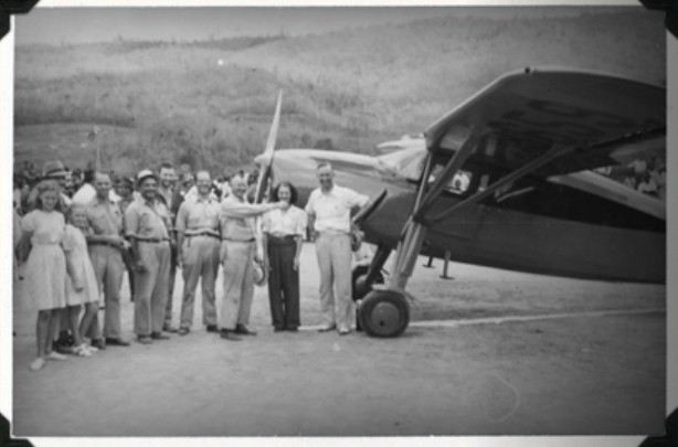 (A nuestra primera y competente Aviadora Venezolana, señorita Mary Calcaño, con motivo de su primer viaje, en su avioneta, a esta su tierra natal, donde fue recibida por todos, con gran demostración de cordialidad y simpatía. ‘El Luchador’ Feb. 23, 1940)