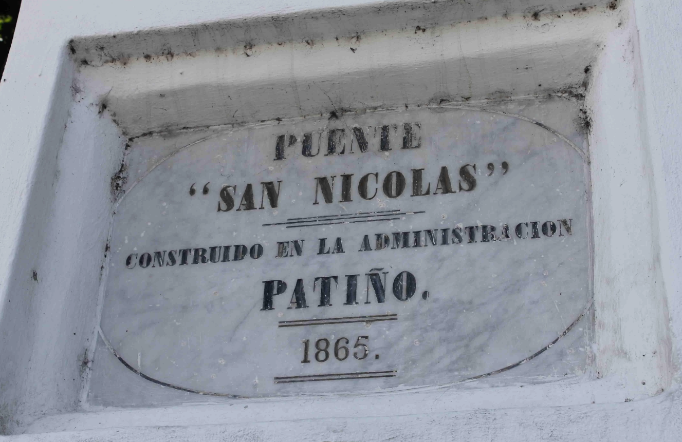 Entre sus obras más simbólicas está el Puente San Nicolás, hoy conocido como puente de La Ceiba. Fue erigido sobre el río Tabure como conexión entre la montaña y el llano, y aún hoy una de sus columnas exhibe una lápida en su honor: “Nicolás Patiño. Predilecto hijo de Cabudare. General en Jefe i Presidente Constitucional del Estado. ¡Loor á sus proezas de guerrero y como ciudadano inmaculado! ¡Honor á sus virtudes inmortales! 1865”.