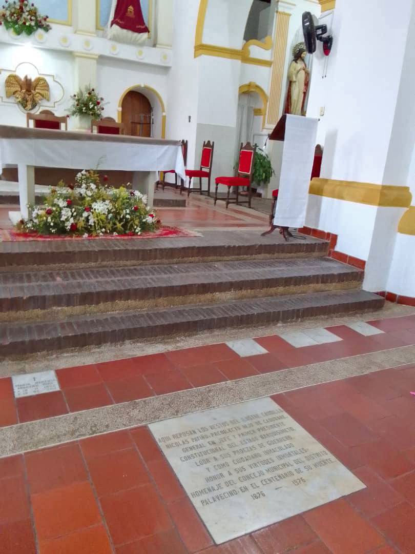 Descansa bajo el altar mayor de la iglesia San Juan Bautista de Cabudare, donde una placa en mármol incrustada en el suelo guarda silencio en su honor y recuerda, a quienes cruzan ese umbral sagrado, la huella de su paso por la historia.