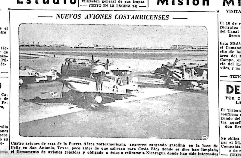 Se trataba de aviones P‑51 Mustang de fabricación estadounidense, aviones de hélice puestos en servicio en la Segunda Guerra Mundial, y Estados Unidos sólo cobró un precio simbólico de un dólar por cada uno de los aviones. Las aeronaves entregadas al gobierno de Costa Rica provenían del arsenal de la Guardia Nacional de Texas.
